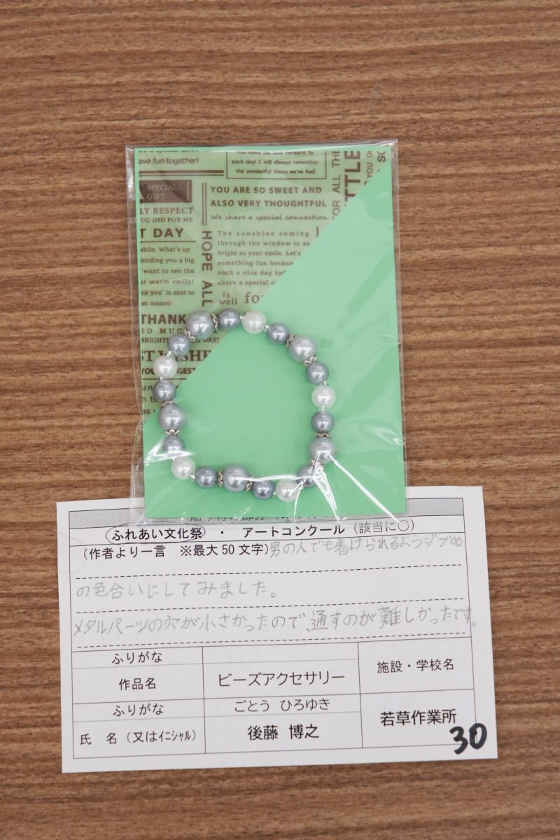 男の人でも着けられるようシブめの色合いにしてみました。メタルパーツの穴が小さかったので、通すのが難しかったです。