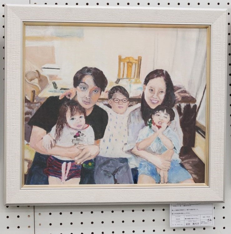 甥っ子家族の仲睦まじい様子を描きました。真ん中の長男が誇らしげです。
