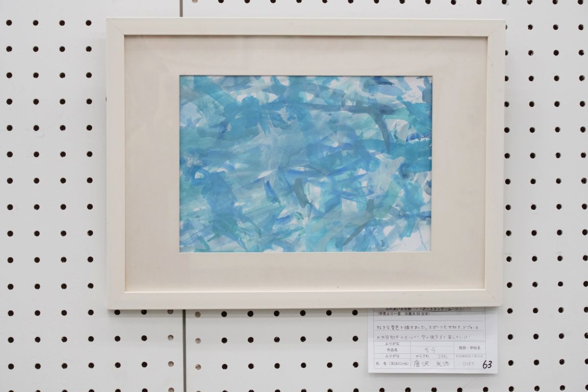 好きな青色で描きました。スポーツも大好き。ドジャースの大谷翔平のホームラン。空も彼方まで飛んでいけ!