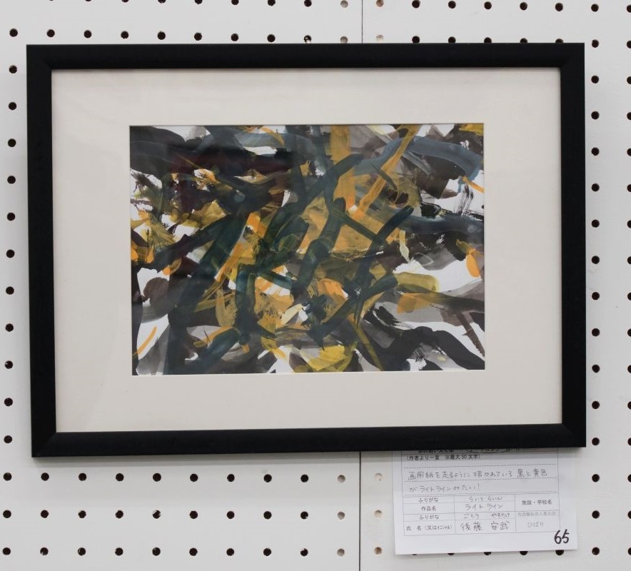 画用紙を走るように描かれている黒と黄色がライトラインみたい!