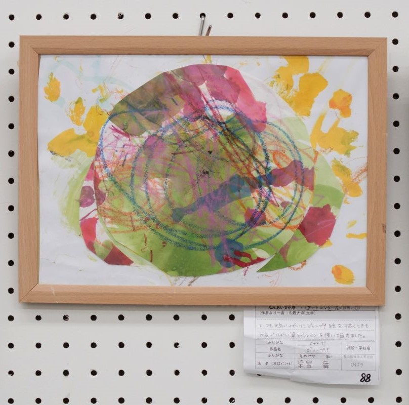 いつも元気いっぱいにジャンプ!絵を描くときも元気いっぱい筆やクレヨンを使い描きました。
