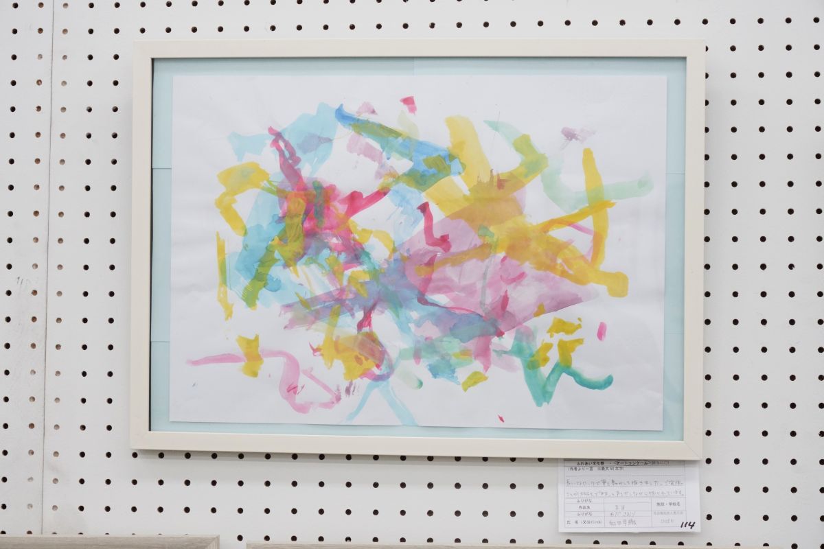 長いストロークで筆を動かして描きました。ご家族のことが大好きで「まま」と声をだしながら描かれています。