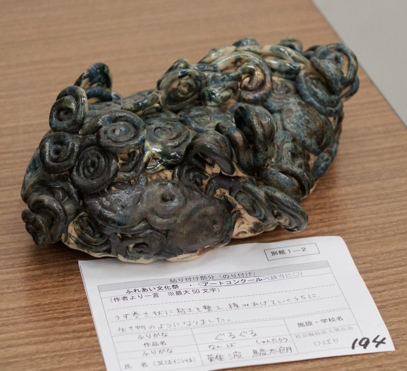 うず巻き状に粘土を整え、積みあげていくうちに、生き物のようになりました。