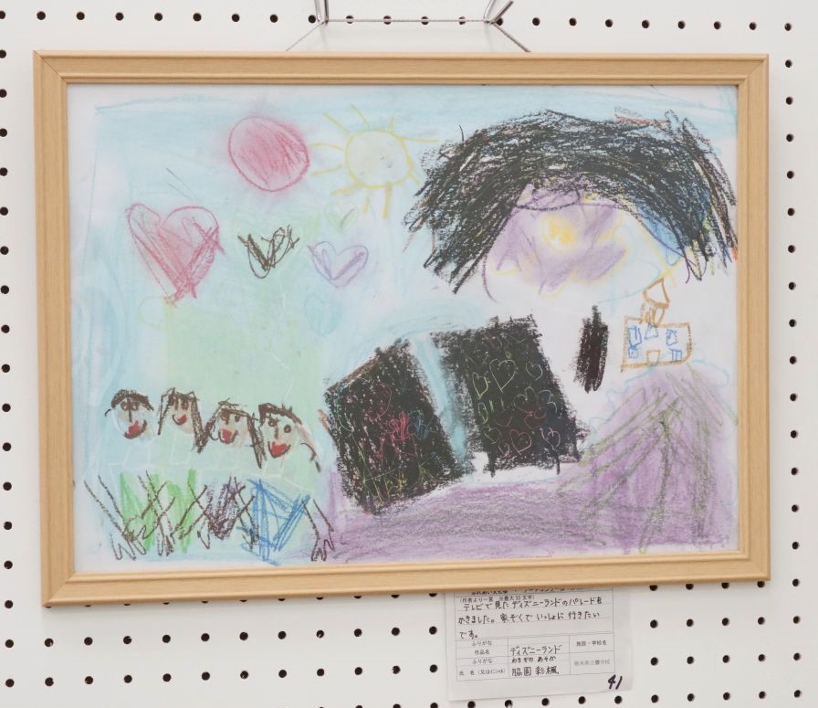 テレビで見たディズニーランドのパレードをかきました。家ぞくでいっしょに行きたいです。